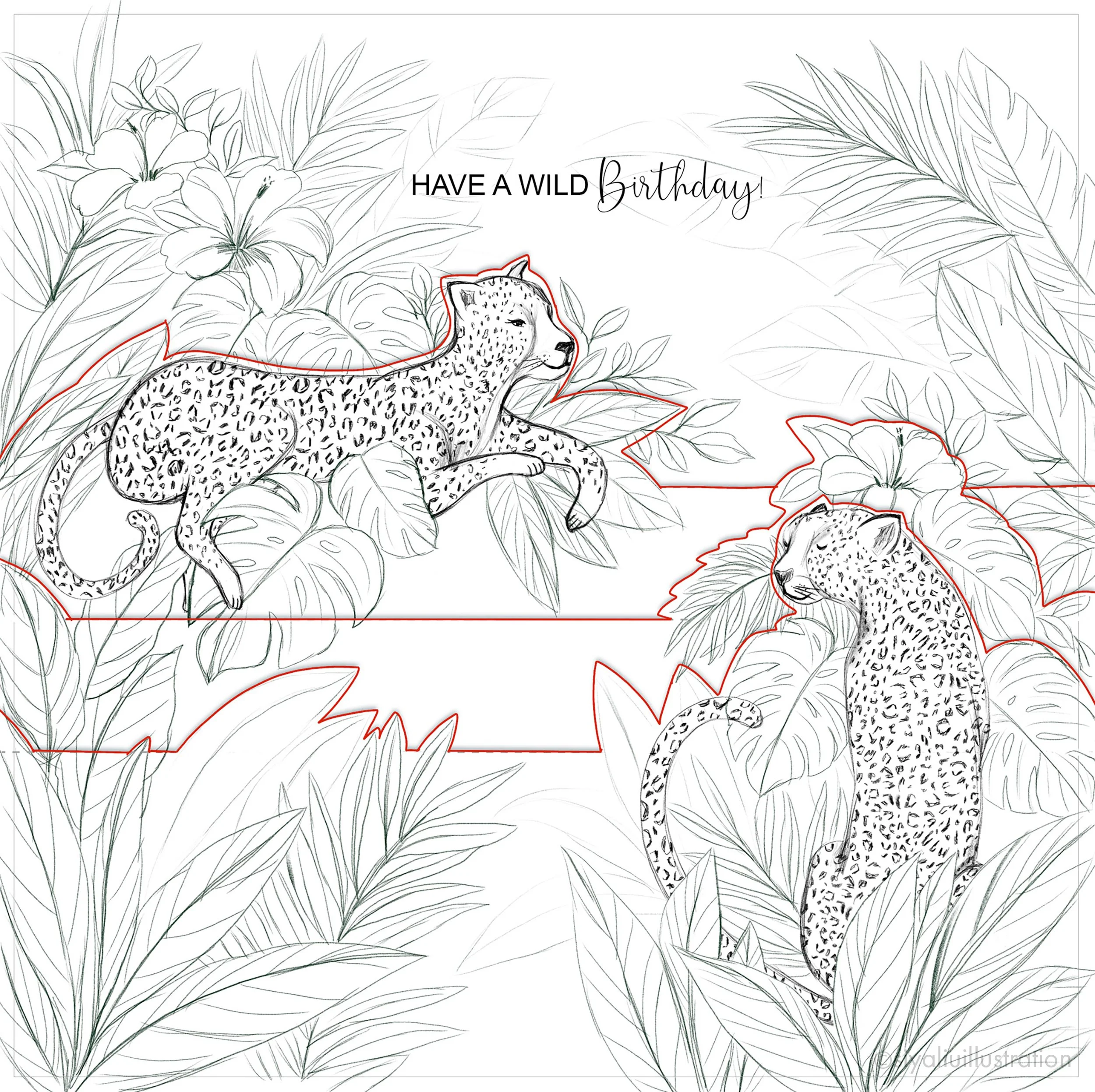 A series of wild animal surface pattern illustrations, available as repeatable patterns, placement prints and 3D greeting card designs.